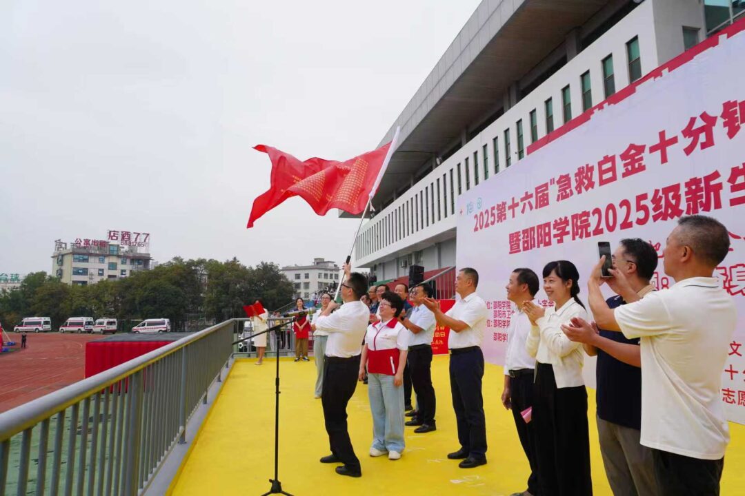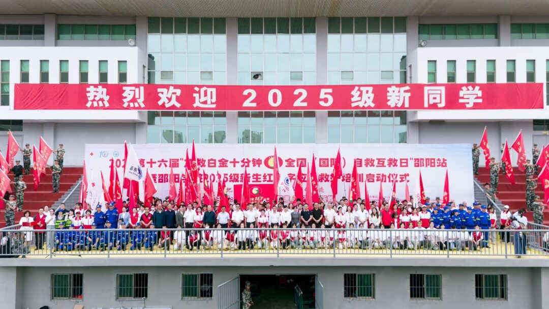 9月27日上午,第十六届“急救白金十分钟——全国(国际)自救互救日”邵阳站暨邵阳学院2025级新生应急救护培训启动仪式在邵阳学院举行。培训活动由邵阳学院、邵阳市红十字会、邵阳市卫生健康委员会主办,邵阳学院附属第二医院、邵阳学院普爱医学院(医学部)承办,各市直医院、红十字应急救护智能化培训基地、相关社会组织协办,共4000余名邵阳学院2025级新生参与。