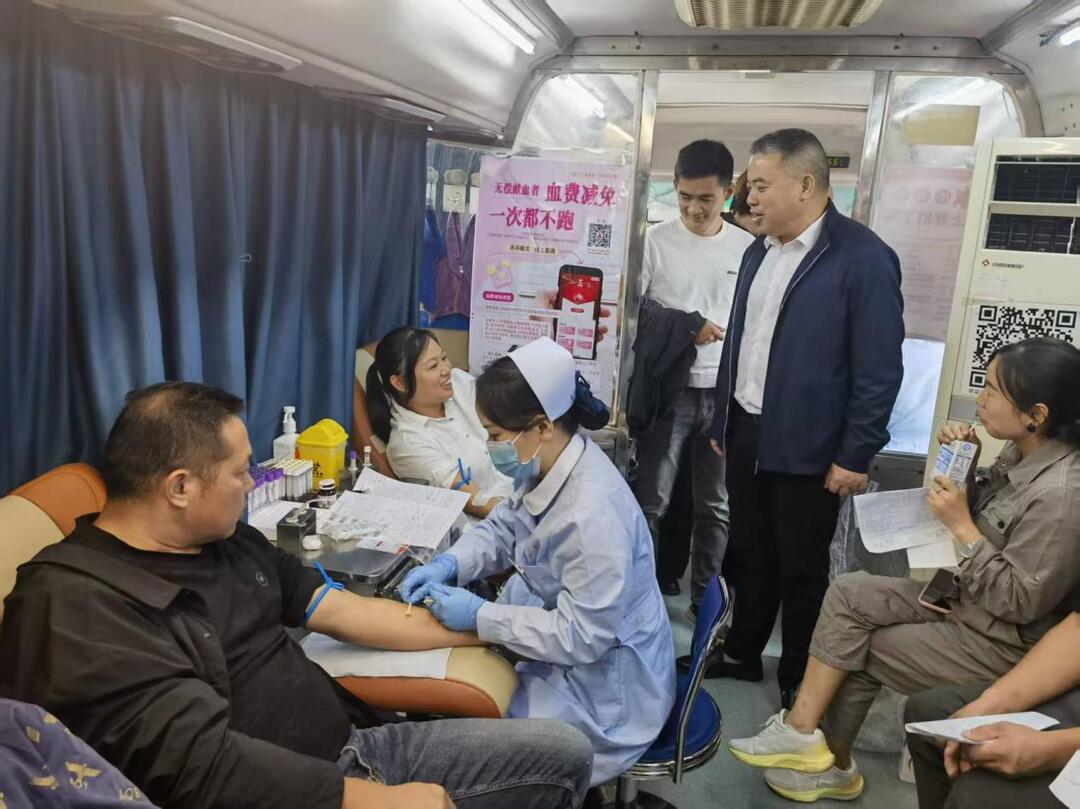 活动现场,党员干部带头示范,群众积极响应,大家有序排队,在市红十字志愿者的指引下有条不紊地进行填表、体检、登记、化验、献血等环节。镇党委书记杨益良到献血车上看望和慰问前来献血的干部群众,并与献血志愿者亲切交流。他希望志愿者这份热血爱心能持续传递下去,带动更多群众参与献血,让爱心在全镇涌动起来,汇聚人间大爱力量,助力生命续航。镇长唐卓也来到活动现场,仔细了解献血人数、血液采集量等情况,向默默奉献的医护人员和献血者致以感谢。他表示,将进一步加大宣传力度,让更多的干部群众加入献血队伍,用真实的善举点亮更多的生命希望。