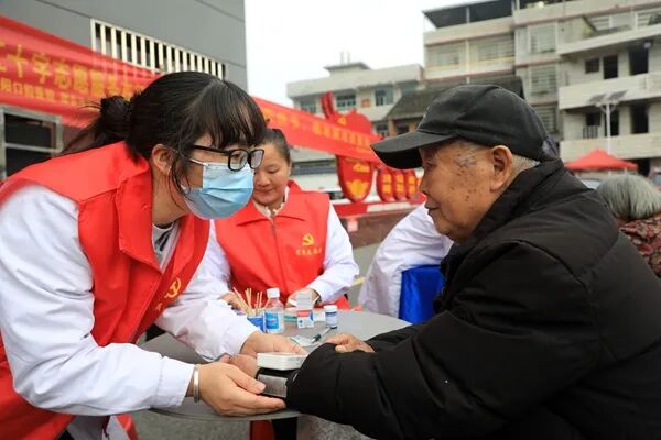 市红十字志愿者向老人宣传义诊服务活动内容,普及健康知识,询问老人们的身体情况,还对参加活动及不方便出门的老年人提供健康咨询、量血压、测血糖、查口腔等义诊服务,使老人都能乘上“健康快车”,让他们零距离感受到贴心服务。