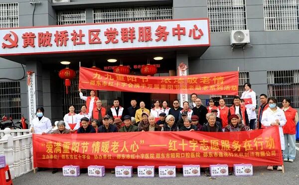 九九重阳,今又重阳。为弘扬中华民族“敬老、爱老、助老”的传统美德,积极营造全社会关心关爱老年人的良好氛围,10月29日上午,邵东市红十字会秉承“人道、博爱、奉献”的红十字精神,联合邵东市红十字医院、邵东市昭阳口腔医院、邵东市莲花打火机制造有限公司在该市大禾塘街道办黄陂桥社区组织开展了爱老敬老温暖老人心重阳节系列活动,来自社区的老人和红十字志愿者们近百人齐聚一堂,共度佳节。
